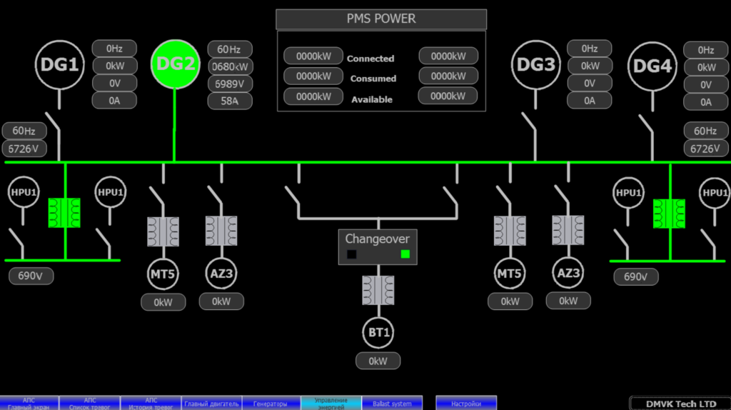 MOREVIA-PMS annab energia jaotamise ja generaatorite täieliku kontrolli. Meeskond suudab selgelt mnemoskeemide ja graafikute abil jälgida seadmete seisukorda, näha ajalood, millal ja mis seadmed olid töös, mis ajaks ja kui palju elektrienergiat toodeti või kulutati.
